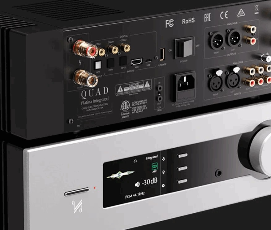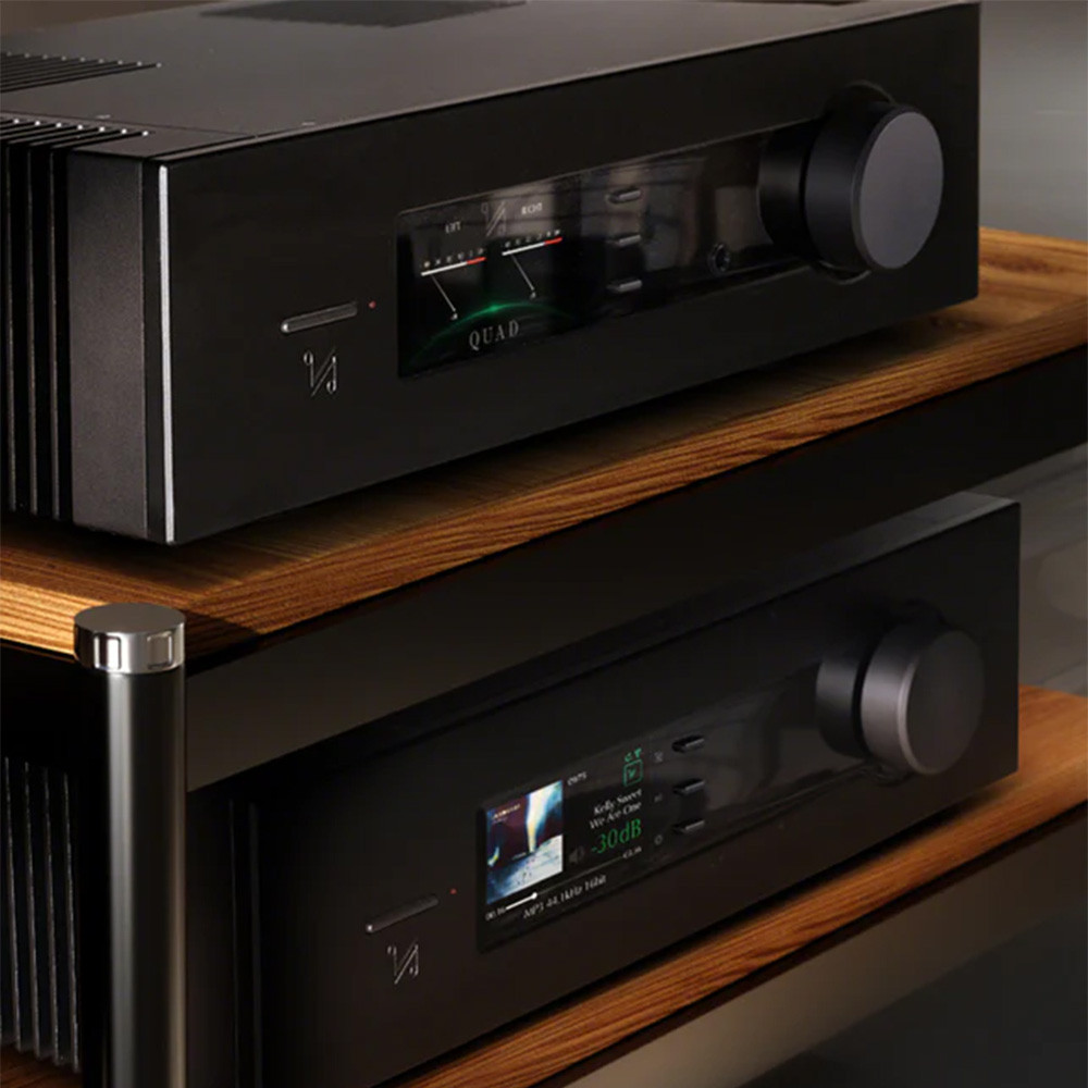 QUAD PLATINA 綜合擴大機設計大膽,造型厚重,可提供參考級音質、卓越功率和無與倫比的精細度。它秉承了 QUAD 的經典風格,同時又以簡潔現代的設計理念重新詮釋了永恆經典。 PLATINA 系列保留了其傳承的精髓,並融合了現代簡約的幾何造型、精緻的材質和實用至上的設計。手感細膩的鋁製旋鈕和精緻的按鈕環繞著清晰的 TFT 顯示屏,營造出觸覺和視覺上的雙重享受。版面嚴謹的後面板採用鍍金接口,兼顧美觀與實用,確保使用者在每個接觸點都能獲得卓越的體驗。最終呈現令人矚目的現代感。
