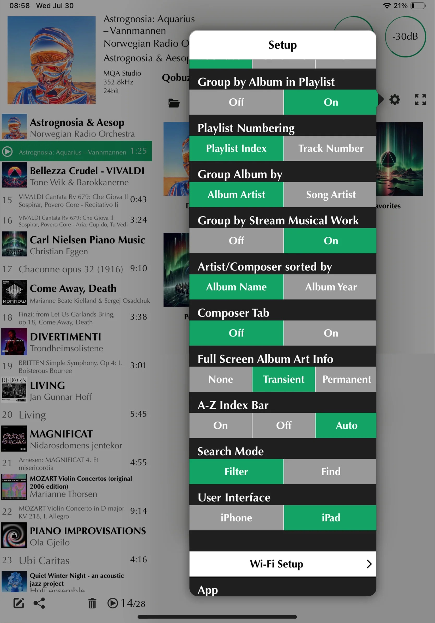 後台運行的極速索引器可將網路共享、U盤和串流服務整合為統一的音樂庫。只需輸入歌曲名稱、演唱者、作曲家、唱片公司、年份,甚至是流派,應用即可即時返回精準的搜尋結果,並按相關性排序。
