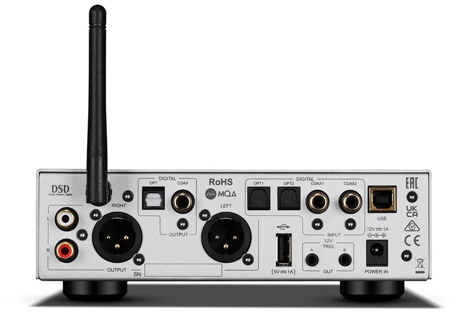 D7 擁有四個 S/PDIF 輸入接口(兩個同軸和兩個光纖),一個 USB HDD 輸入接口用於播放外部閃存盤,以及一個 USB B 型輸入接口,可用於連接 PC、Mac、智慧型手機或平板電腦。它還提供同軸、光纖、類比 RCA 和全平衡 XLR 輸出選項,使其成為一個功能豐富的數位音訊中心。此外,它還支援藍牙接收,支援多種編解碼器,包括 aptX HD,並相容於藍牙 5.1,以實現最佳覆蓋範圍和速度。