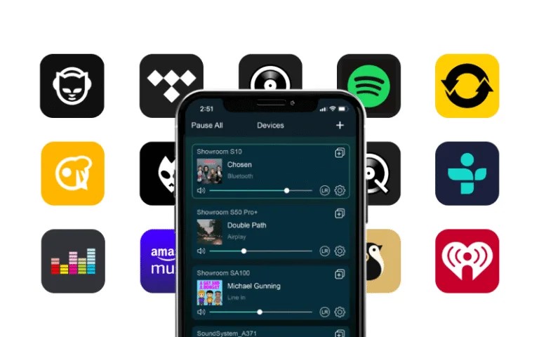 LP10 支援多種音樂來源的串流播放,包括線上音樂服務、智慧裝置儲存空間、USB 隨身碟、NAS 網路硬碟、藍牙及類比輸入。所有音樂來源皆可同步重新串流至其他已連接的裝置,實現多裝置間的音樂共享與同步播放。